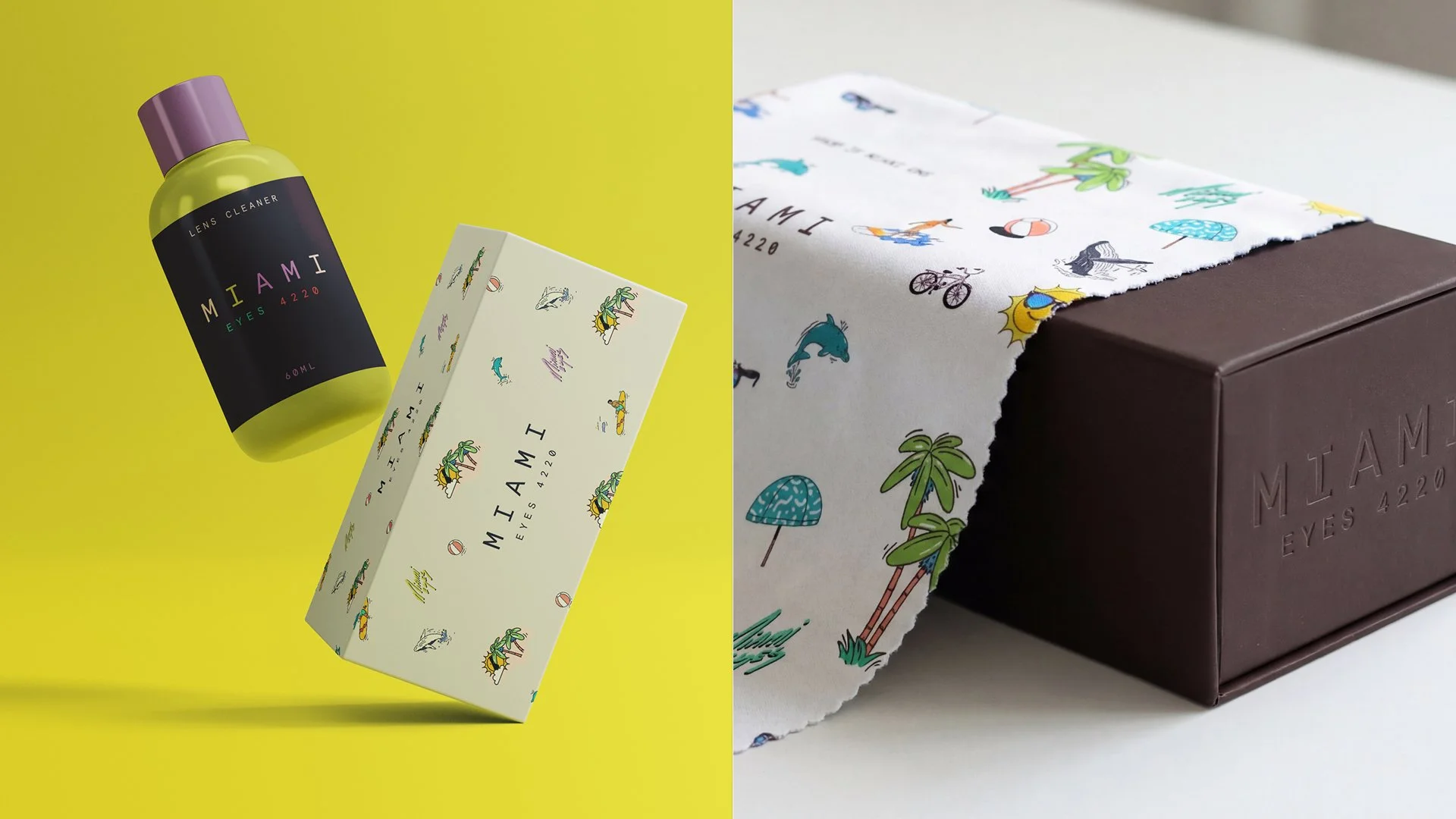 A bold colour palette, iconic illustrations and typography informed by local signage and the Snellen chart. We set out to make MIAMI EYES, iconically Miami 4220.