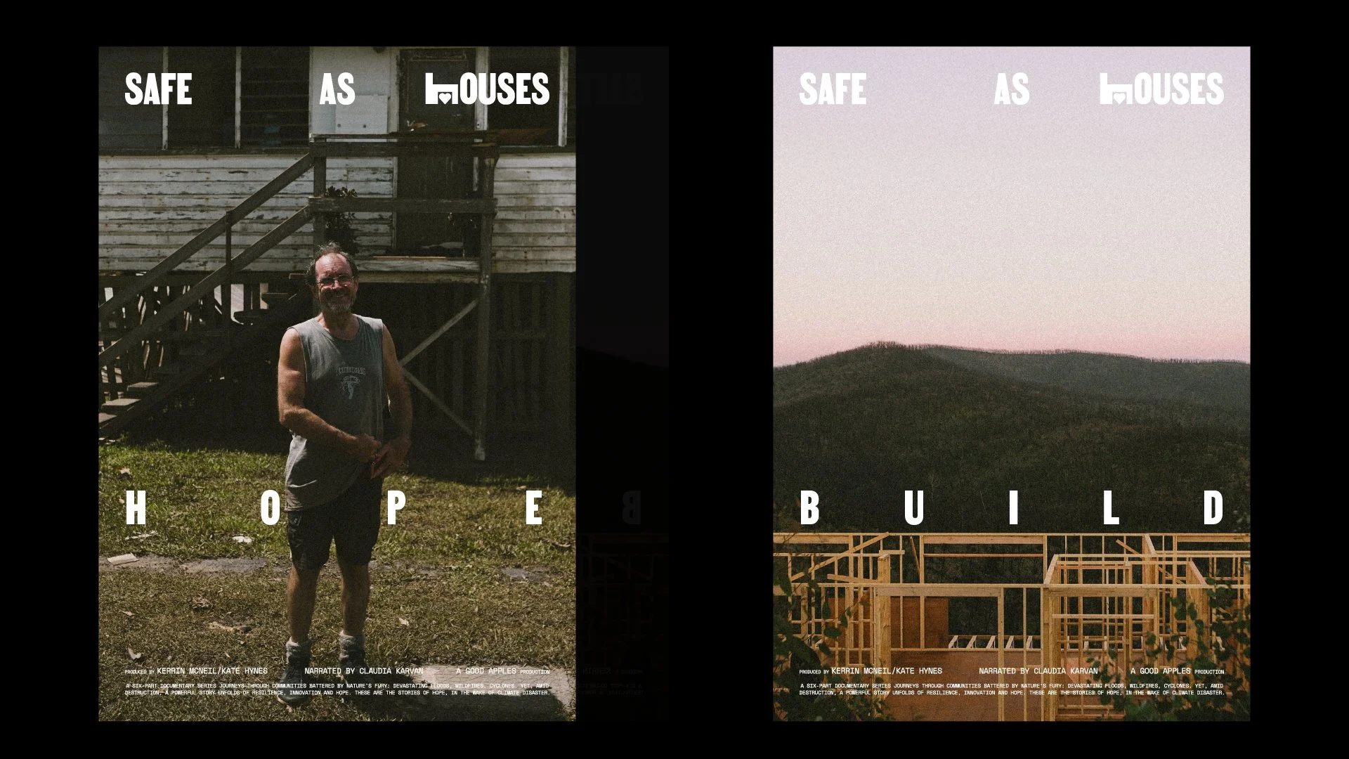 Produced by Kerrin McNeil and Kate Hynes of Good Apples, SAFE AS HOUSES is a six-part documentary series that journeys through communities battered by nature's fury: devastating floods, wildfires and cyclones. Yet, amid such destruction, a powerful story unfolds of resilience, innovation and hope in an uncertain future.